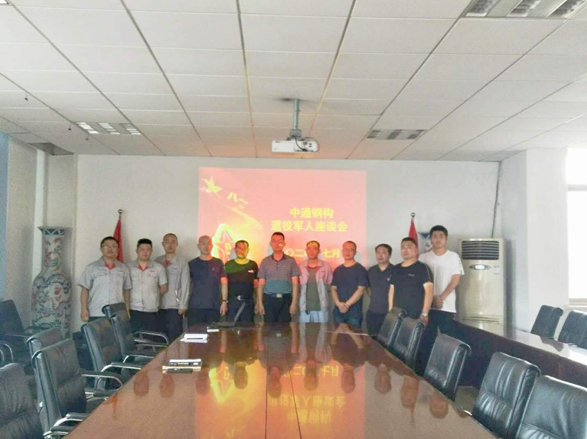 在建軍節(jié)93周年到來之際,中通鋼構(gòu)工會(huì)積極組織八一建軍節(jié)活動(dòng),并組織部分復(fù)轉(zhuǎn)軍人召開了慰問座談會(huì),公司黨總支副書記、工會(huì)主席姚英軍、綜合部部長張博參加了座談會(huì)。